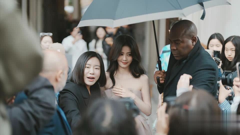 她被人群与镜头环绕,脸上带着浅浅的微笑,从容又自信,黑人保镖贴心撑伞,周围粉丝疯狂抓拍。即便被层层包围,她的明星气场也丝毫未减。这种亲和力与明星气场并存的画面,正是她多年来从配角一路成长为主角的缩影——始终谦逊,始终努力。