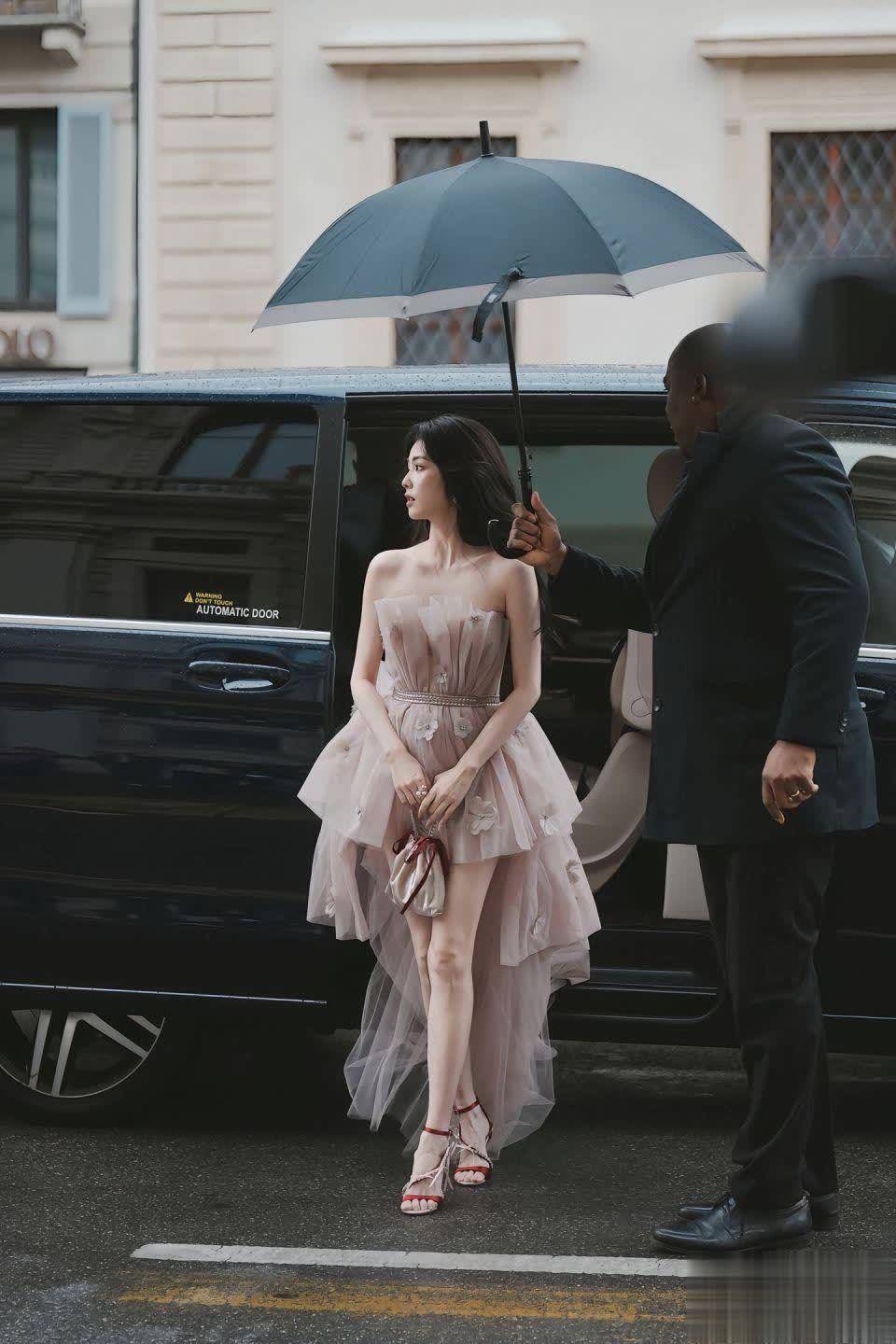 白鹿在随行人员与打伞保镖的陪伴下前行,眼神从容又有戏。米兰老城的背景与她的造型碰撞出 “复古与现代交融” 的火花,镜头里的她,既有明星的闪耀,又带着邻家女孩的亲和,这种 “松弛感” 真的太圈粉。